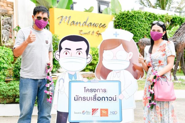 ขณะเดียวกัน นายประสิทธิ์ เจียวก๊ก ประธานโครงการ “คืนคุณแผ่นดิน” ได้จัดแพ็กเกจพิเศษเพื่อแสดงความขอบคุณบุคลากรทางการแพทย์ซึ่งได้ชื่อว่า “นักรบเสื้อกาวน์” แนวหน้าในการต่อสู้กับสถานการณ์โควิด-19 จนทำให้สถานการณ์การแพร่ระบาดในประเทศไทยคลี่คลายลง ภายใต้โครงการ “นักรบเสื้อกาวน์ เสร็จศึกสู้โควิด เราคิดถึงพวกท่านทุกคน” มอบสิทธิพิเศษแพ็คเกจท่องเที่ยวฟรี 3 วัน 2 คืน พัก กิน เที่ยว จ.กระบี่ (1 ท่านสามารถพาผู้ติดตามได้ฟรีอีก 1 ท่าน ) ที่โรงแรม มัณดาวีต์ รีสอร์ต แอนด์ สปา จ.กระบี่ โดยได้เปิดรับสมัครและทำการคัดเลือกตั้งแต่วันที่ 1 พฤษภาคม – 28 กรกฎาคม 2563 สามารถเดินทางท่องเที่ยวได้ตั้งแต่วันที่ 1 กรกฎาคม 2563 ไปจนถึง 31 กรกฎาคม 2565 รวมระยะการใช้สิทธินานถึง 2 ปี ปัจจุบันมีแพทย์และบุคลากรทางการแพทย์เข้าร่วมลงทะเบียนลุ้นรับสิทธิพิเศษเป็นผู้โชคดี กว่า 50,000 คน