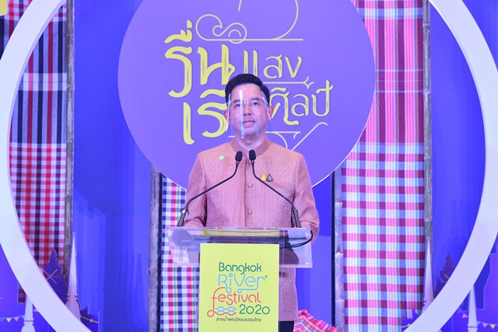 นายอิทธิพล คุณปลื้ม รัฐมนตรีว่าการกระทรวงวัฒนธรรม เป็นประธานในพิธีแถลงข่าวงาน “Bangkok River Festival 2020 สายน้ำแห่งวัฒนธรรมไทย” กับการสานต่อความสำเร็จอย่างต่อเนื่อง ที่จัดขึ้นเป็นครั้ง ที่ 6 ภายใต้แนวคิด “รื่นเริง แสงศิลป์” ที่จะจัดขึ้นระหว่างวันที่ 29 – 31 ตุลาคม 2563 และในปีนี้เน้นการจัดงานแบบการท่องเที่ยวโดยชุมชน “เข้าถึงง่าย ปลอดภัย ร่วมสมัย มีเอกลักษณ์” และมุ่งพัฒนาและสร้างประโยชน์ “บ.ว.ร” อย่างยั่งยืน แบ่งปันองค์ความรู้และผลักดันอัตลักษณ์และคุณค่าเชิงวัฒนธรรมของชุมชนให้กว้างขึ้นผ่านกิจกรรม อีกทั้งยังได้ขยายเครือข่ายให้กว้างขึ้นผ่านการเสวนาที่เชื่อมโยง นักวิชาการ ศิลปิน ผู้เชี่ยวชาญด้านศิลปวัฒนธรรมแขนงต่างๆ ที่เกี่ยวข้องหรือสัมพันธ์กับพื้นที่ นอกจากนี้ยังได้เชื่อมโยงงานเทศกาลศิลปะร่วมสมัยนานาชาติ “บางกอก อาร์ต เบียนนาเล่ 2020” (Bangkok Art Biennale) หรือ BAB 2020 อีกด้วย โดยมี นายสุรพล เศวตเศรนี ประธานการจัดงาน Bangkok River Festival 2020 สายน้ำแห่งวัฒนธรรมไทย และ หน่วยงานพันธมิตรทุกภาคส่วน ร่วมพิธีแถลงข่าว ณ อาคารสิริภักดีธรรม วัดประยุรวงศาวาสวรวิหาร