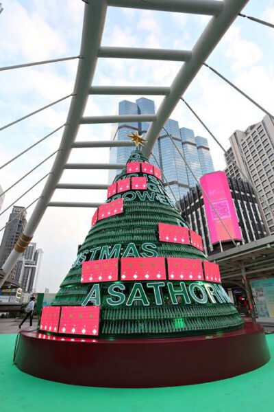 1.กิจกรรม Sathorn District Charity Christmas Tree รวมพลังส่งต่อความสุขเพื่อสร้างสรรค์สังคม ด้วยต้นคริสต์มาสแห่งการแบ่งปัน เพื่อสิ่งแวดล้อมและสังคม ชวนทุกคนมาร่วมเปลี่ยนเทศกาลแห่งเฉลิมฉลองในปีนี้ให้มีความหมายมากยิ่งขึ้น ผ่านการส่งต่อความสุขให้กับเด็ก และเยาวชนในโรงเรียน และชุมชนที่ขาดแคลน ภายใต้แนวคิด “One Give One Gift – หนึ่งคนให้ หนึ่งคนรับ” โดยปีนี้ ต้นคริสต์มาสที่เป็นแลนด์มาร์กของการเฉลิมฉลองในย่านสาทร ได้รับการสร้างสรรค์และตกแต่งด้วยขวดพลาสติก bioPET ที่ใช้แล้ว เพื่อสร้างความตระหนักในเรื่องปัญหาขยะ และการรีไซเคิลโดยนำวัสดุเหลือใช้มาทำให้เกิดประโยชน์