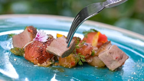ด้าน เชฟหนุ่ม-ธนินทร จันทรวรรณ เปิดเผยว่าได้แรงบันดาลใจในการสร้างสรรค์เมนูอาหาร ในงาน Dining Experience in Khao Yai with Michelin Star Chef ครั้งที่ 1 นี้จากแนวคิด “เปิดประตูสู่อีสาน” โดยเลือกวัตถุดิบท้องถิ่นยอดนิยมของภาคอีสาน เช่น ปลาร้า หม่ำเนื้อ ผสมผสานกับวัตถุดิบหลักคุณภาพพรีเมียมจากซีพีเอฟ ทั้งไก่เบญจา หมูชีวา และเป็ด หลอมรวมเข้ากับกลิ่นอายความเป็นอีสานได้อย่างลงตัว อาทิ ไก่เบญจากับหัวปลีเผา สลัดมะเขือเทศย่างกับเป็ดรมควัน และซี่โครงหมูหมักข้าวหมากย่าง แจงลอนปลากราย น้ำพริกพริกไทยสด และอาหารสะท้อนเสน่ห์อีสาน ได้แก่ แกงปลาคังย่างปลาไหล หม่ำเนื้อแตงกวาดอง แจ่วปลาร้าบอง ตำบักส้ม ต้มโฮกฮือ ทานพร้อม ข้าวหุงน้ำมะพร้าวเผา ที่สร้างความประทับใจแก่แขกทุกท่านอย่างยิ่ง