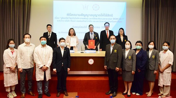 รองศาสตราจารย์ ดร.สมชาย สันติวัฒนกุล อธิการบดี มหาวิทยาลัยศรีนครินทรวิโรฒ เปิดเผยถึงการลงนามสัญญาอนุญาตใช้สิทธิข้อมูลเทคโนโลยี จุลินทรีย์ โพรไบโอติก สายพันธุ์ Lactobacillus paracasei MSMC39-1 ครั้งนี้ “ด้วยทางมหาวิทยาลัยส่งเสริมสนับสนุนการพัฒนางานวิจัยและนวัตกรรม ทำให้เกิดองค์ความรู้ที่มีประโยชน์ และต่อยอดผลงานวิจัยที่มีศักยภาพเพื่อนำไปใช้ประโยชน์เชิงพาณิชย์ได้ ตลอดจนสร้างความร่วมมือหน่วยงานภาครัฐและเอกชน อันจะก่อให้เกิดการพึ่งพาเทคโนโลยีที่มีอยู่ภายในประเทศ ซึ่งเป็นการเพิ่มขีดความสามารถในการแข่งขัน สร้างความเข้มแข็งให้กับมหาวิทยาลัยและภาคอุตสาหกรรมในประเทศด้วย