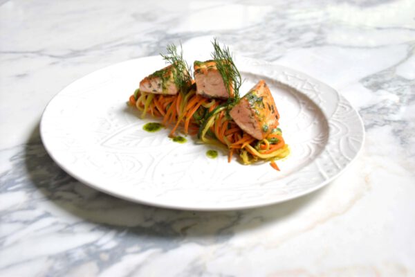 ผู้เชี่ยวชาญด้านการทำอาหารของรีสอร์ทเพื่อสุขภาพใจกลางเมือง ร่วมมือกับแพทย์ผู้ชำนาญการจากคลินิกสุขภาพระดับโลรังสรรค์ 10 เมนูปราศจากนมและกลูเตนเอาใจสายคลีน อร่อยล้น คุณค่าครบ ตอบโจทย์ผู้ที่เป็นโรคภูมิแพ้หรือแพ้ง่าย ปลาแซลมอนอบกับสปาเก็ตตี้ผักและซอสสมุนไพร