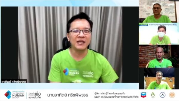 ด้าน นายอาทิตย์ กริชพิพรรธ ผู้จัดการใหญ่ฝ่ายสนับสนุนธุรกิจ บริษัท เชฟรอนประเทศไทยสำรวจและผลิตจำกัด เปิดเผยว่า “โครงการตามรอยพ่อฯ พร้อมที่จะเข้าไปเสริมและสนับสนุนยุทธศาสตร์การเตรียมการรับมือวิกฤตโควิด-19 ของมูลนิธิฯ อย่างเต็มที่ ในฐานะสื่อพอดี เพื่อสร้างความรู้ความเข้าใจให้เกิดการนำองค์ความรู้ศาสตร์พระราชาไปลงมือปฏิบัติจนเกิดผลเป็นรูปธรรม ซึ่งเป็นสิ่งที่โครงการตามรอยพ่อฯ ดำเนินการอย่างต่อเนื่องจนถึงปีนี้เป็นปีที่ 9 ผ่านกิจกรรมลงพื้นที่และการสื่อสารผ่านช่องทางต่างๆ ซึ่งประสบความสำเร็จเป็นอย่างดี มีผู้เข้าร่วมกิจกรรมจากทั่วประเทศกว่า 20,000 คน และยังมีผู้ที่ได้รับความรู้และแรงบันดาลใจจากสื่อที่โครงการผลิตขึ้นอีกมากมาย โดยเราจะมุ่งทำหน้าที่นี้อย่างเข้มแข็งและต่อเนื่องเพื่อสื่อสารว่าศาสตร์พระราชาคือทางรอดจากทุกวิกฤตอย่างแท้จริง