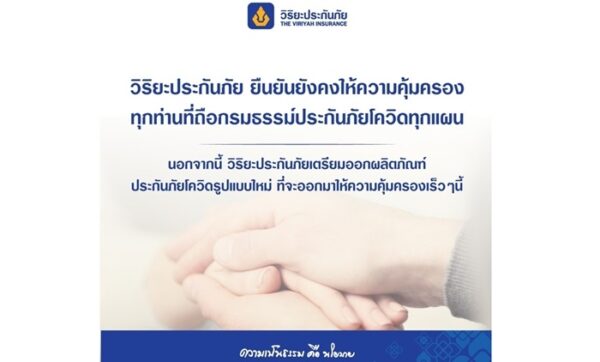 วิริยะประกันภัยประกาศยังให้ความคุ้มครองประกันภัยโควิด-19 ทุกแผน ส่วนลูกค้าที่กรมธรรม์ใกล้หมดอายุหรือลูกค้ารายใหม่ เตรียมพบผลิตภัณฑ์ประกันภัยโควิด-19 รูปแบบใหม่ ที่มุ่งเน้นความคุ้มครองให้ได้รับการรักษาพยาบาลที่ดีที่สุด