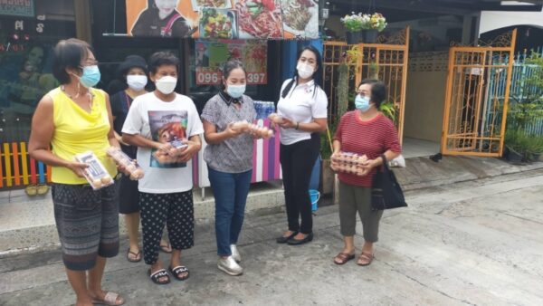 จึงได้ร่วมกับทีมอาสาฯ นำข้าวสารอาหารแห้ง ไข่ มาแจกจ่ายให้กับประชาชนเพื่อแบ่งเบาภาระ ไม่มากก็น้อย นอกจากนี้ยังได้พยายามประสานกับหน่วยงานสาธารณสุขเพื่อช่วยเหลือผู้ป่วยที่ยังคงรอเตียงเพื่อเข้ารับการรักษาพยาบาล
