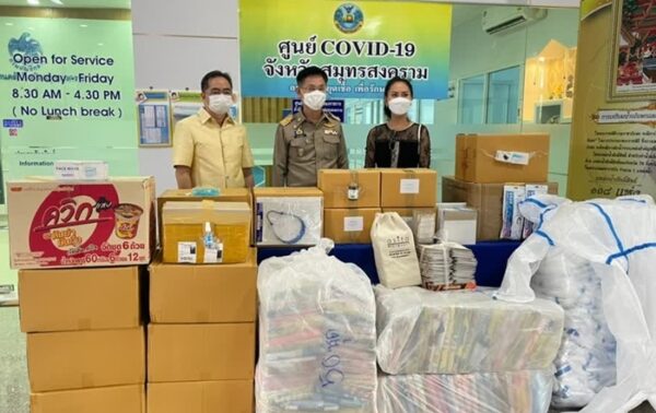 ด้านนายชรัส บุญณสะ ผู้ว่าราชการจังหวัดสมุทรสงคราม กล่าวด้วยว่า ต้องขอขอบคุณทุกภาคส่วนที่นำสิ่งของมามอบให้กับศูนย์โควิด-19 จังหวัดสมุทรสงคราม ซึ่งของทั้งหมดนี้จะนำไปมอบให้กับโรงพยาบาลส่งเสริมสุขภาพตำบลและศูนย์แพทย์ชุมชน จำนวนกว่า 40 แห่ง ในการดูแลผู้ป่วยที่ไม่ได้รักษาตัวที่โรงพยาบาล เนื่องจากสิ่งของประเภทนี้จำเป็นต่อโรงพยาบาลส่งเสริมสุขภาพตำบลและศูนย์แพทย์ชุมชนอย่างมากในการดูแลผู้ป่วยในเบื้องต้น