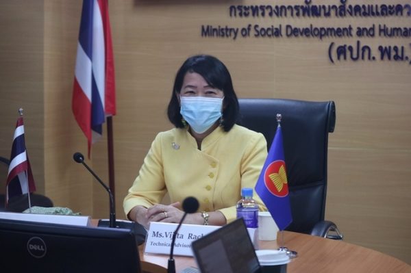 เมื่อวันที่ 22 ก.ย. 64 เวลา 08.30 – 11.00 น. ที่ห้องประชุม ชั้น 2 กระทรวงการพัฒนาสังคมและความมั่นคงของมนุษย์ สะพานขาว ถนนกรุงเกษม กทม. นางสาววิจิตา รชตะนันทิกุล ที่ปรึกษาวิชาการพัฒนาสังคม ได้รับมอบหมายจากนางพัชรี อาระยะกุล ปลัดกระทรวงการพัฒนาสังคมและความมั่นคงของมนุษย์ (ปลัด พม.)ให้ปฏิบัติหน้าที่หัวหน้าเจ้าหน้าที่อาวุโสสำหรับคณะมนตรีประชาคมสังคมและวัฒนธรรมอาเซียนของประเทศไทย (SOCA Leader of Thailand) เข้าร่วมการประชุมร่วมเจ้าหน้าที่อาวุโสสามเสาหลักอาเซียน (ASEAN Joint Consultative Meeting: JCM) ผ่านระบบการประชุมทางไกล (Video Conference) พร้อมด้วยเจ้าหน้าที่กองการต่างประเทศ โดยมี นายชุตินทร คงศักดิ์ รองปลัดกระทรวงการต่างประเทศ หัวหน้าเจ้าหน้าที่อาวุโสสำหรับคณะมนตรีประชาคมการเมืองและความมั่นคงอาเซียน (SOM Leader) ของประเทศไทย เป็นหัวหน้าคณะฝ่ายไทย
