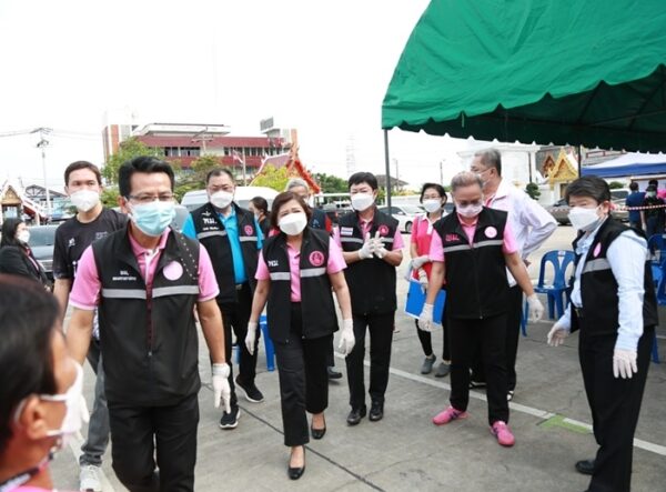 นางพัชรี อาระยะกุล ปลัดกระทรวงการพัฒนาสังคมและความมั่นคงของมนุษย์ (ปลัด พม.) พร้อมด้วยคณะผู้บริหารกระทรวง พม. ลงพื้นที่ ณ วัดม่วง เขตบางแค กทม. เพื่อตรวจเยี่ยมการฉีดวัคซีนป้องกันโรคโควิด-19 ให้กับกลุ่มเปราะบางซึ่งมีความเสี่ยงสูงจากการแพร่ระบาดของโรคโควิด -19 พร้อมมอบถุงยังชีพ “ถุงกำลังใจ” ประกอบด้วยเครื่องอุปโภคบริโภคและยารักษาโรคที่จำเป็น นอกจากนี้ ได้นำคณะเจ้าหน้าที่กระทรวง พม. และอาสาสมัครพัฒนาสังคมและความมั่นคงของมนุษย์ (อพม.) ในพื้นที่เขตบางแค ร่วมอำนวยความสะดวกกลุ่มเปราะบางที่เข้ารับการฉีดวัคซีน อีกทั้งให้กำลังใจทีมแพทย์บริการฉีดวัคซีน