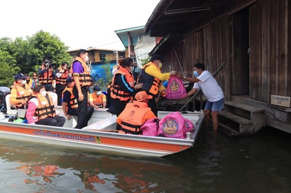 วันนี้ (8 ต.ค. 64) เวลา 14.00 น. นายจุติ ไกรฤกษ์ รัฐมนตรีว่าการกระทรวงการพัฒนาสังคมและความมั่นคงของมนุษย์ (รมว.พม.) พร้อมด้วยคณะผู้บริหารกระทรวง พม. ลงพื้นที่จังหวัดพิษณุโลก เพื่อช่วยเหลือประชาชนผู้ประสบภัยน้ำท่วมในพื้นที่อําเภอบางระกํา โดยมอบถุงยังชีพ“กองทุนช่วยเหลือผู้ประสบสาธารณภัยสำนักนายกรัฐมนตรี” จำนวน 1,800 ชุด สำหรับครอบครัวผู้ประสบภัย ณ อาคารบุญนิธิ คุณพ่อซุ่น แซ่เตี๊ย-คุณแม่จั๊ง (ห้องประชุมข้าง กศน.)อำเภอบางระกำ จังหวัดพิษณุโลก จากนั้น เดินทางลงพื้นที่โดยเรือ เพื่อเยี่ยมบ้านครอบครัวกลุ่มเปราะบางที่มีทั้งเด็กและผู้สูงอายุ ซึ่งประสบปัญหาความเดือดร้อนและยากลำบากจากภัยน้ำท่วม จำนวน 7 ครอบครัว พร้อมทั้งมอบถุงยังชีพ ทั้งนี้ มีนางพัชรี อาระยะกุล ปลัดกระทรวง พม. นายรณชัย จิตรวิเศษ ผู้ว่าราชการจังหวัดพิษณุโลก พัฒนาสังคมและความมั่นคงของมนุษย์จังหวัดพิษณุโลก ทีม One Home พม. จังหวัดพิษณุโลก และผู้แทนหน่วยงานท้องถิ่นที่เกี่ยวข้อง รวมทั้งอาสาสมัครพัฒนาสังคมและความมั่นคงของมนุษย์ (อพม.) ลงพื้นที่บูรณาการให้ความช่วยเหลือร่วมกัน