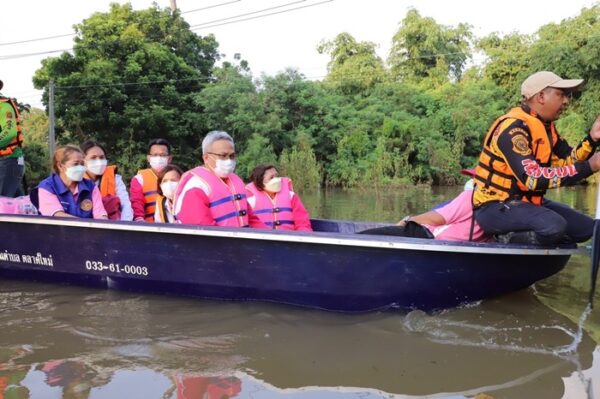 นอกจากนี้ เวลา 15.00 น. ได้เดินทางไปลงพื้นที่จังหวัดอ่างทอง เพื่อมอบถุงยังชีพ จำนวน 200 ชุด ช่วยเหลือผู้ประสบภัยน้ำท่วม ณ วัดไทรย์นิโครธาราม ตำบลจรเข้ร้อง อำเภอไชโย จังหวัดอ่างทอง อีกทั้งได้ลงพื้นที่เยี่ยมบ้านครอบครัวกลุ่มเปราะบางที่ได้รับผลกระทบจากภัยน้ำท่วม จำนวน 5 ครอบครัว และได้มอบถุงยังชีพ ทั้งนี้ มีนายวีระศักดิ์ วิจิตร์แสงศรี ผู้ว่าราชการจังหวัดอ่างทอง นายสมชาย ลีหล้าน้อย รองผู้ว่าราชการจังหวัดสิงห์บุรี พร้อมด้วยพัฒนาสังคมและความมั่นคงของมนุษย์จังหวัด ทีม One Home พม. จังหวัด และผู้แทนหน่วยงานท้องถิ่นที่เกี่ยวข้อง รวมทั้งอาสาสมัครพัฒนาสังคมและความมั่นคงของมนุษย์ (อพม.) ลงพื้นที่บูรณาการให้ความช่วยเหลือร่วมกัน