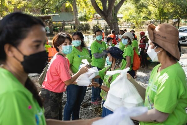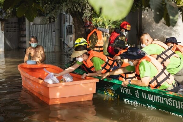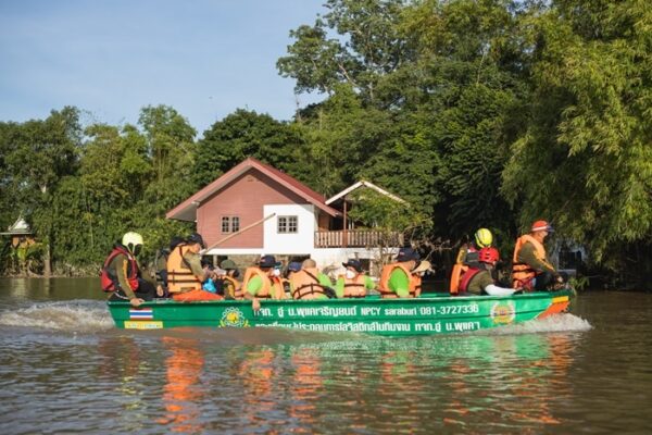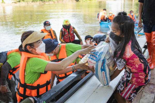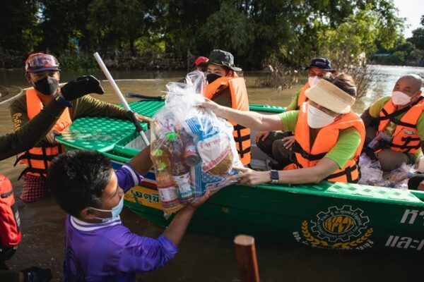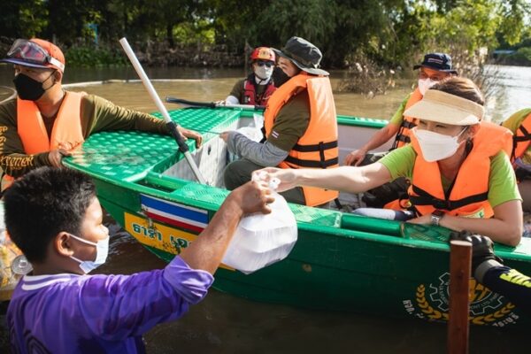 อย่างไรก็ดี หลังจากดำเนินกิจกรรมไปไม่นาน พายุ ‘เตี้ยนหมู่’ ที่พัดเข้าสู่ประเทศไทยในช่วงปลายเดือนกันยายนทำให้ฝนตกหนักเกิดน้ำท่วมฉับพลันเกือบทุกภูมิภาคของประเทศไทย รวมถึงในพื้นที่ลุ่มน้ำป่าสัก จังหวัดสระบุรี เราจึงขยายขอบเขตการดำเนินงานของแคมเปญรวมพลังสู้โควิด-19 ด้วยการส่งความช่วยเหลือไปยังผู้ประสบภัยน้ำท่วมในพื้นที่ดังกล่าวอย่างเร่งด่วน