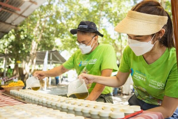 เมื่อคนมารวมตัวกันเยอะๆ เราก็ต้องเตรียมเรื่องอาหาร น้ำดื่ม และยา ให้พรั่งพร้อม เพราะเรากำลังเผชิญวิกฤตวิด-19 อยู่ด้วย โดยเราได้เตรียมยาสมุนไพรต่างๆ ยาทั้งน้ำสมุนไพร 7 นางฟ้า หน้ากากอนามัย ยาหยอดจมูก และถุงยังชีพเพื่อแจกผู้ประสบภัย นอกจากนี้เรายังเตรียมทำน้ำยาเอนกประสงค์ เพื่อใช้ชำระล้างจานล้างถ้วย เพราะเป็นผลิตภัณฑ์ที่ทำจากวัตถุดิบธรรมชาติไม่มีสารเคมี จึงไม่ทำให้น้ำที่ท่วมขังอยู่เน่าเสีย นอกจากนั้น การปฏิบัติตามแนวทางศาสตร์พระราชาได้สร้างประโยชน์อย่างอเนกอนันต์ โดยไม่เพียงทำให้เราช่วยเหลือตนเองได้ แต่ยังส่งผลให้เรามีแหล่งวัตถุดิบในการประกอบอาหารให้กับผู้ประสบภัยน้ำท่วมอย่างไม่ขาดแคลน และเมื่อเครือข่ายของเราทั้งในสระบุรีและพื้นที่ใกล้เคียงเช่น นครนายก ทราบเรื่อง ก็ส่งอาหารต่างๆ มาสมทบอีกแรงด้วย”