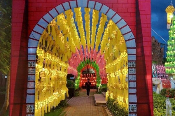 และอีกจุดหนึ่ง ร่วมถวายโคมสักการะแด่องค์เจ้าแม่จามเทวีปฐมกษัตรีของชาวลำพูน ได้ที่อนุเสาวรีย์เจ้าแม่จามเทวี ทางเทศบาลเมืองลำพูน ได้ตกแต่ง ประดับเป็นสวนโคมไฟ อุโมงค์โคมไฟ ให้ทุกท่านได้ชื่นชม และถ่ายภาพ