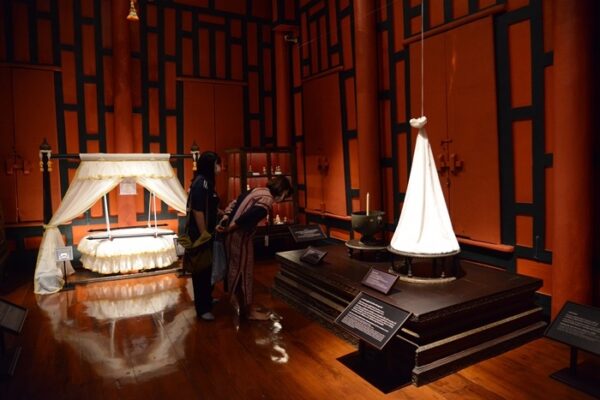 พร้อมชมจิตรกรรมฝาผนังแห่งยุคต้นกรุงรัตนโกสินทร์ ชมพระตำหนักแดง ซึ่งจัดแสดงนิทรรศการวิถีชีวิตของเด็กไทย ตั้งแต่การเกิด การโกนจุก จนถึงประเพณีการเรียนการศึกษา โดยโบราณวัตถุสำคัญที่จัดแสดง อาทิ พระแท่นประสูติของสมเด็จพระเจ้าบรมวงศ์เธอ เจ้าฟ้าบริพัตรสุขุมพันธ์ กรมพระนครสวรรค์วรพินิต พระแท่นบรรทมเพลิง (กระดานอยู่ไฟ) เครื่องเล่นของสมเด็จพระบรมโอรสาธิราช เจ้าฟ้ามหาวชิรุณหิศ สยามมกุฎราชกุมาร บ้านตุ๊กตาของเจ้าจอมเลียม ในรัชกาลที่ ๕ นอกจากนี้ยังเล่าเรื่องวัฒนธรรมการกินหมากของคนไทย